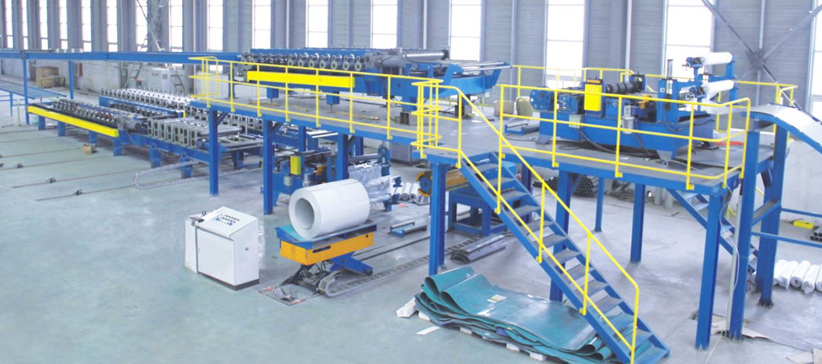 引進(jìn)聚氨酯板材六組高壓發(fā)泡生產(chǎn)線,可根據(jù)生產(chǎn)環(huán)境溫度和濕度的變化在線調(diào)整混合比例,保證發(fā)泡結(jié)構(gòu)的均勻細(xì)膩;雙履帶保障板面的平整度,板面精整度可控制在0.01CM